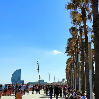 Barceloneta: je městská pláž hojně navštěvovaná místními. Dostat se sem lze několika způsoby, autobus vás přepraví blíže pláže. V případě dopravy metrem na stanici Barceloneta budu nutné asi kilometr dojít pěšky, buď po rušné ulici plné restaurací a rychlých občerstvení, nebo po klidnější promenádě se spoustou stánků. Nám načasování návštěvy pláže vyšlo skvěle, protože jsme "trefili" nejteplejší den v období (23°C). Velkou nevýhodou se jevilo, že byla právě neděle a stejný nápad měla polovina obyvatel Barcelony.
